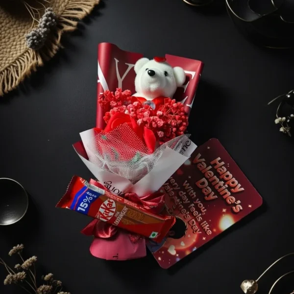 Valentine’s Teddy and KitKat Bouquet Combo
