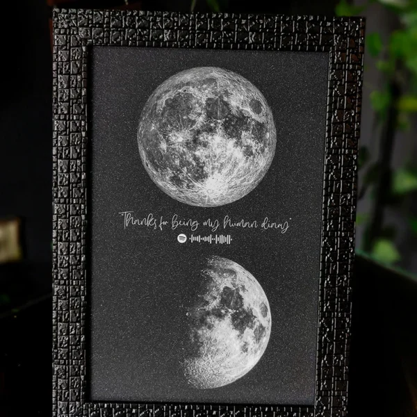 Celebrate your special day and your loved ones like never before with A2ZEEGIFTS’ Birthday Moon Phase Gift. Relive the magical moment when the moon graced the night sky on the day you were born, complemented with captivating details of your birth location and a heartfelt Spotify song link.