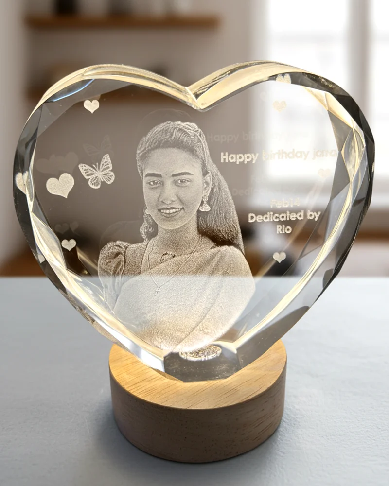Market Comparison Advantage: While other stores offer heart crystals, our Diamond Cut Heart 3D Photo Crystal offers superior clarity, a more luxurious faceted design, and an excellent size for the price, ensuring your gift truly stands out as a unique piece of art.