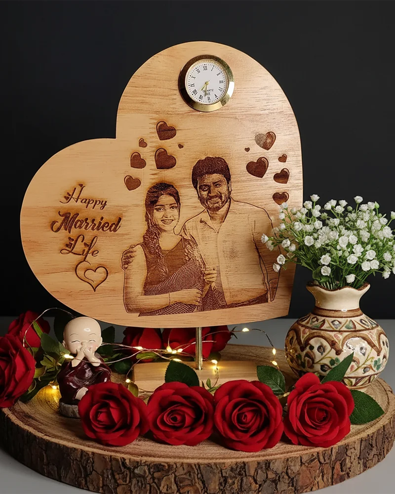 - ✍️ A short, sweet, and personalized message (like “Happy Married Life” or a special date).