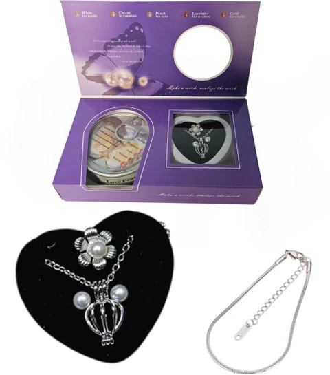 - 1 x Anti-Tarnish Silver Necklace: Featuring a heart or wishbone cage pendant.