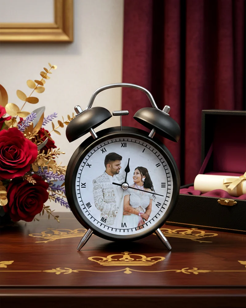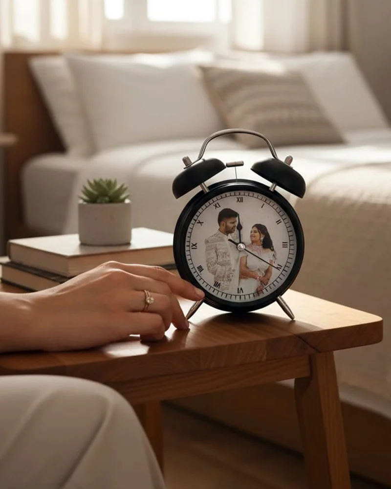 Photo Alarm Clock – the perfect blend of nostalgia and personalization. Start every morning by seeing the faces you love. This large-sized, classic black alarm clock features your custom photo on the dial, making it a timeless gift for anniversaries, birthdays, or your own home.